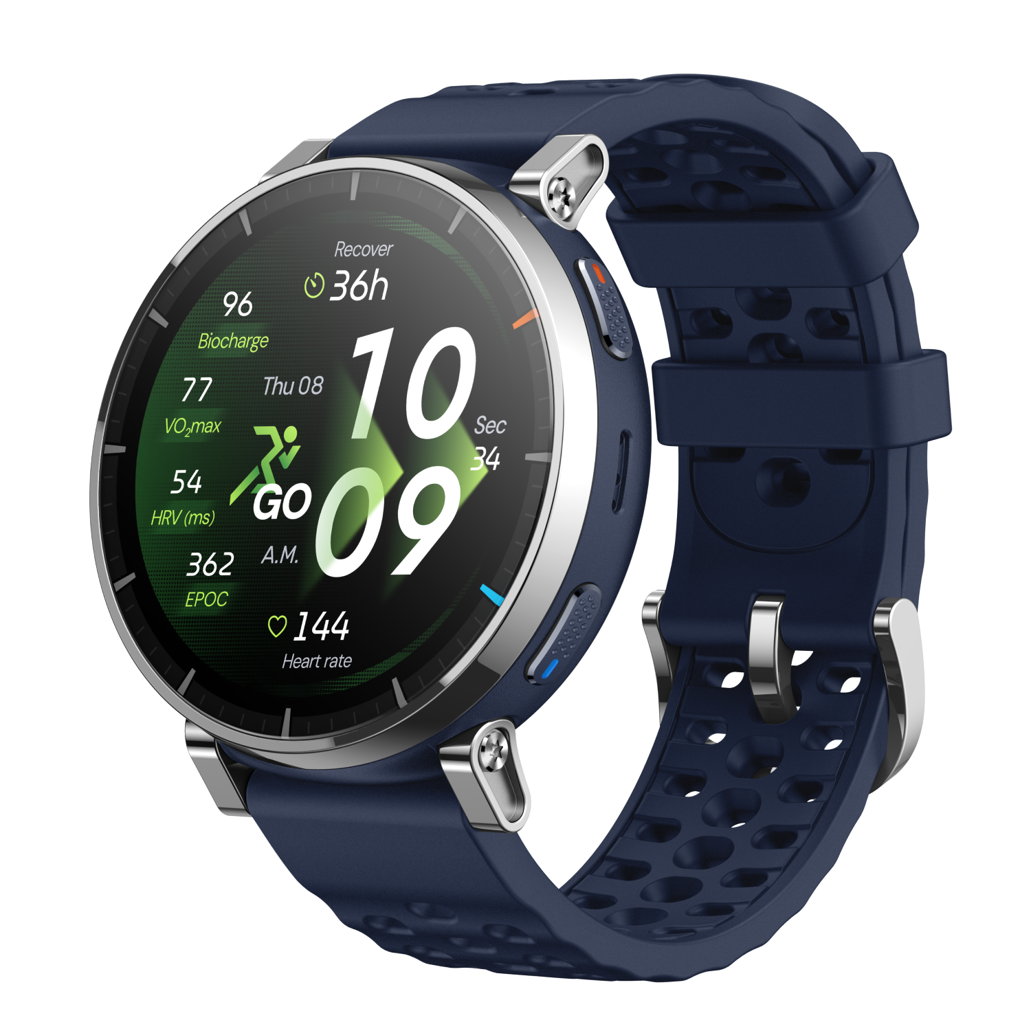 BioTracker ™ monitora la frequenza cardiaca⁴ durante gli allenamenti per aiutarti a comprendere sforzo e intensità in tempo reale. Il monitoraggio delle zone di frequenza cardiaca mostra quando stai aumentando la resistenza, la velocità o stai esagerando. In combinazione con informazioni sul sonno⁵ , sull'ossigeno nel sangue e sullo stress, questo ti aiuta a bilanciare allenamento e recupero in modo più efficace.