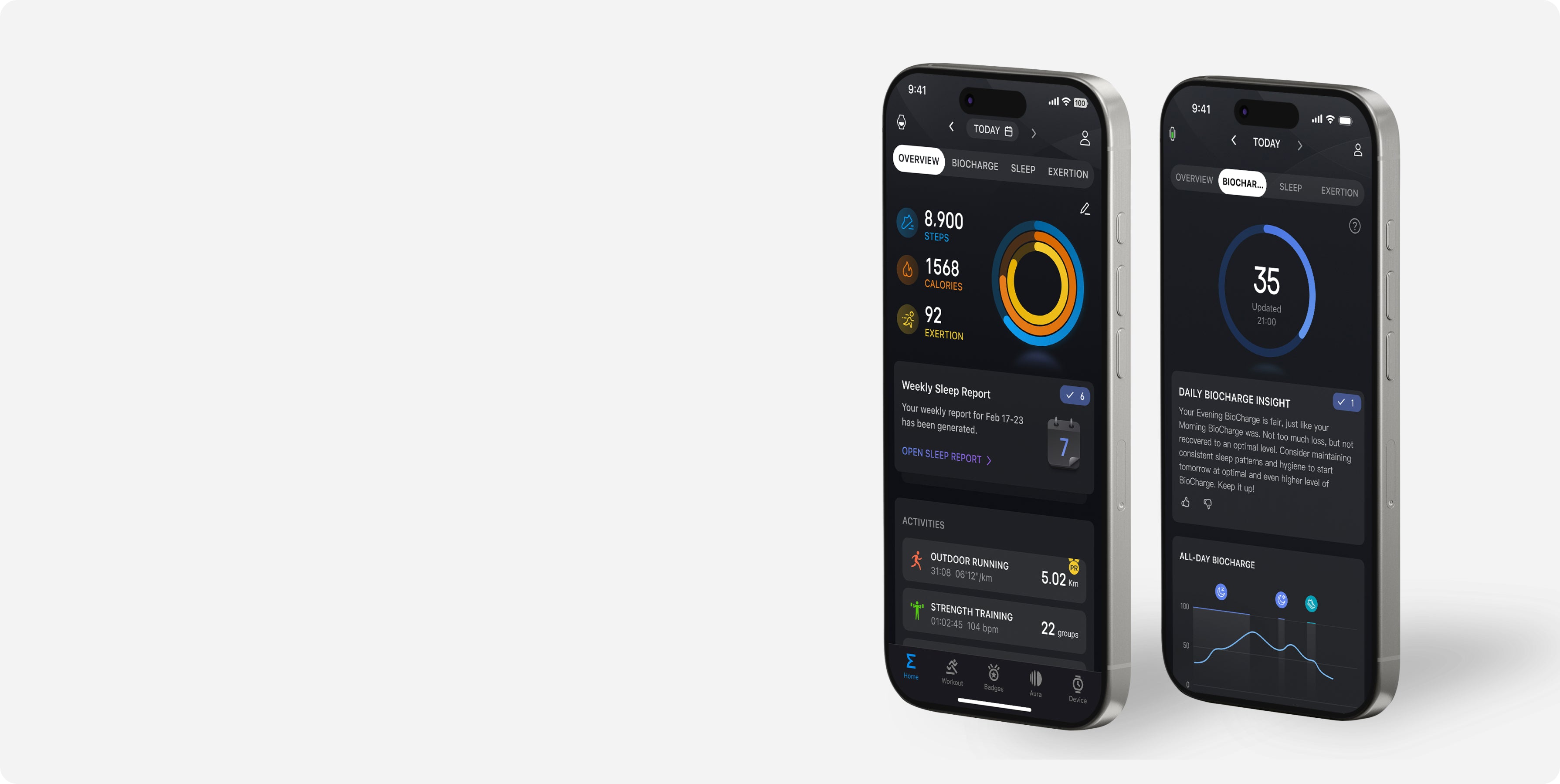 BioTracker ™ monitora la frequenza cardiaca⁵ durante gli allenamenti per aiutarti a comprendere sforzo e intensità in tempo reale. Il monitoraggio delle zone di frequenza cardiaca mostra quando stai aumentando la resistenza, la velocità o stai esagerando. In combinazione con informazioni sul sonno6 , sull'ossigeno nel sangue e sullo stress, questo ti aiuta a bilanciare allenamento e recupero in modo più efficace.
