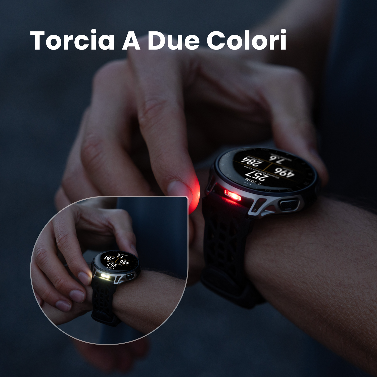 L'illuminazione a LED a doppia modalità, con opzioni di luce bianca e rossa, migliora la visibilità durante le corse al mattino presto e alla sera tardi, mentre le modalità Boost e SOS offrono maggiore sicurezza durante gli allenamenti in condizioni di scarsa illuminazione.